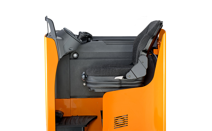 - Máxima comodidad del operario gracias a la placa suelo ajustable en altura en el vehiculo de conductor sentado